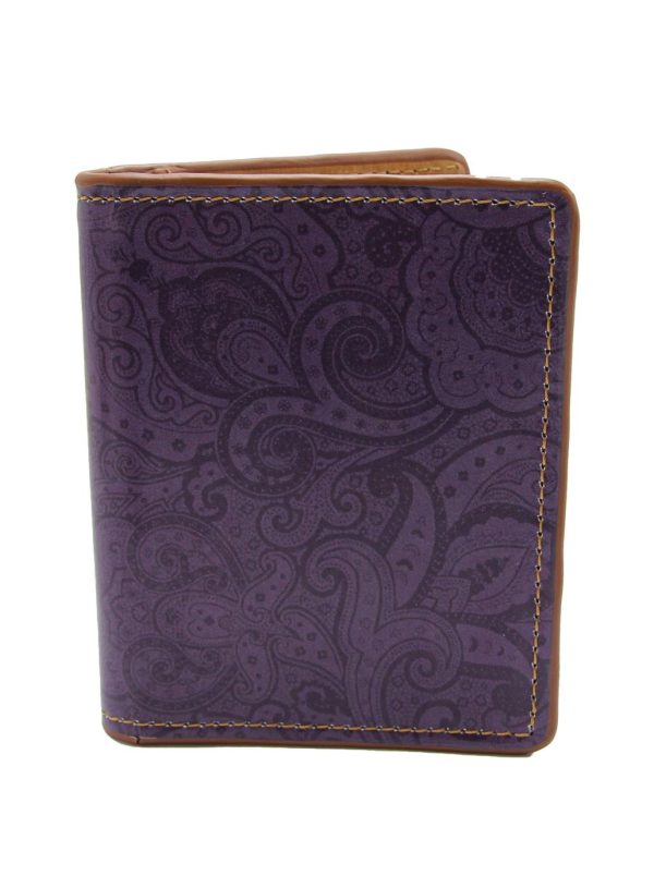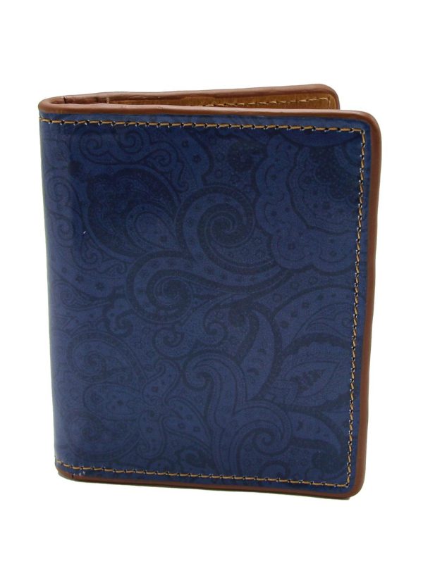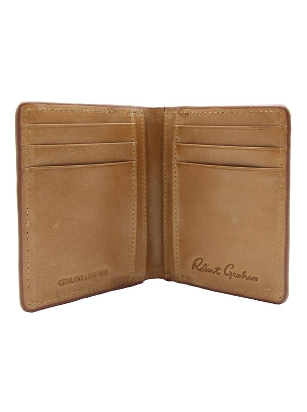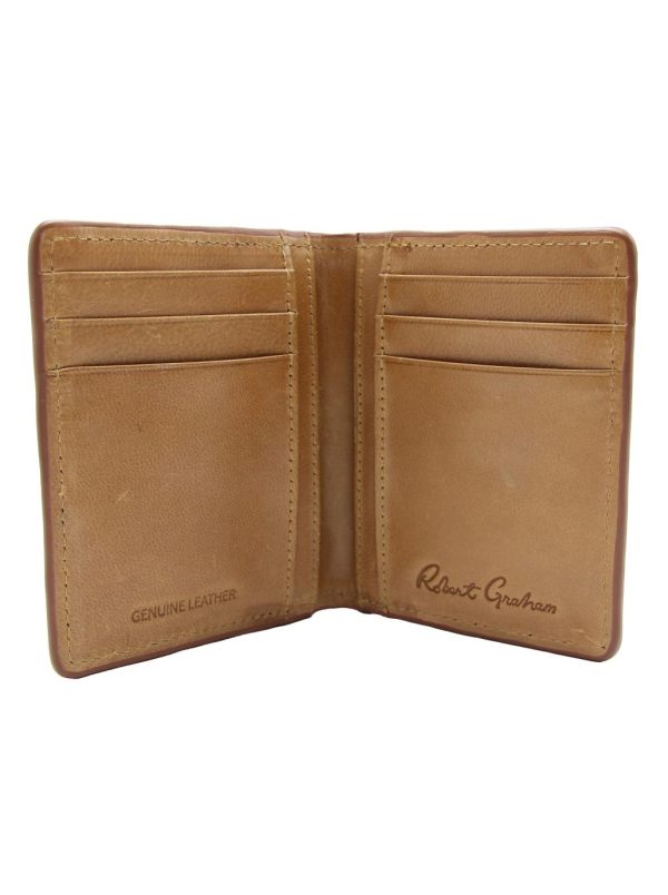 Top quality leather card case embossed with the Robert Graham signature paisley motif. Contrast multicolor stitching at the edges and embossed Robert Graham signature at the bottom.